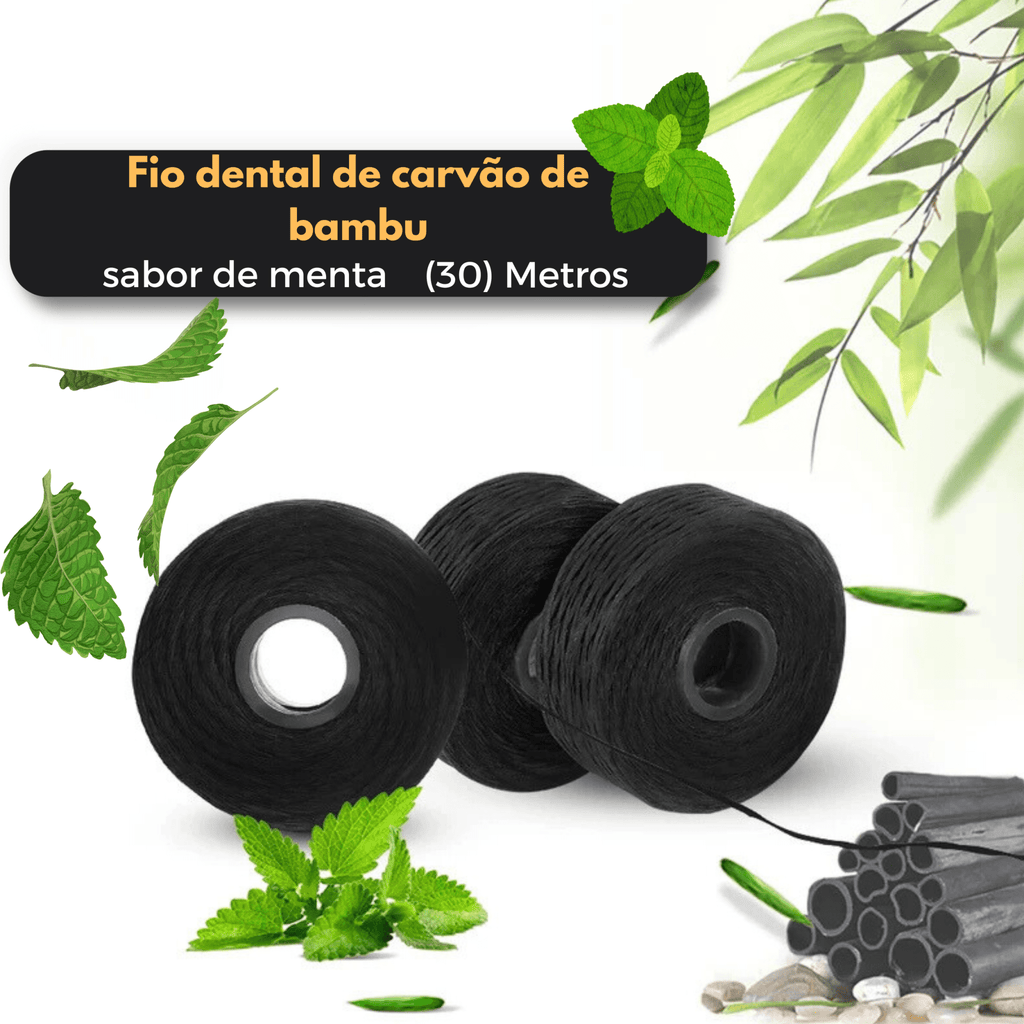 🌿 Cuide do Seu Sorriso e do Planeta – Fio Dental Sustentável de Bambu e Carvão! 🦷💚