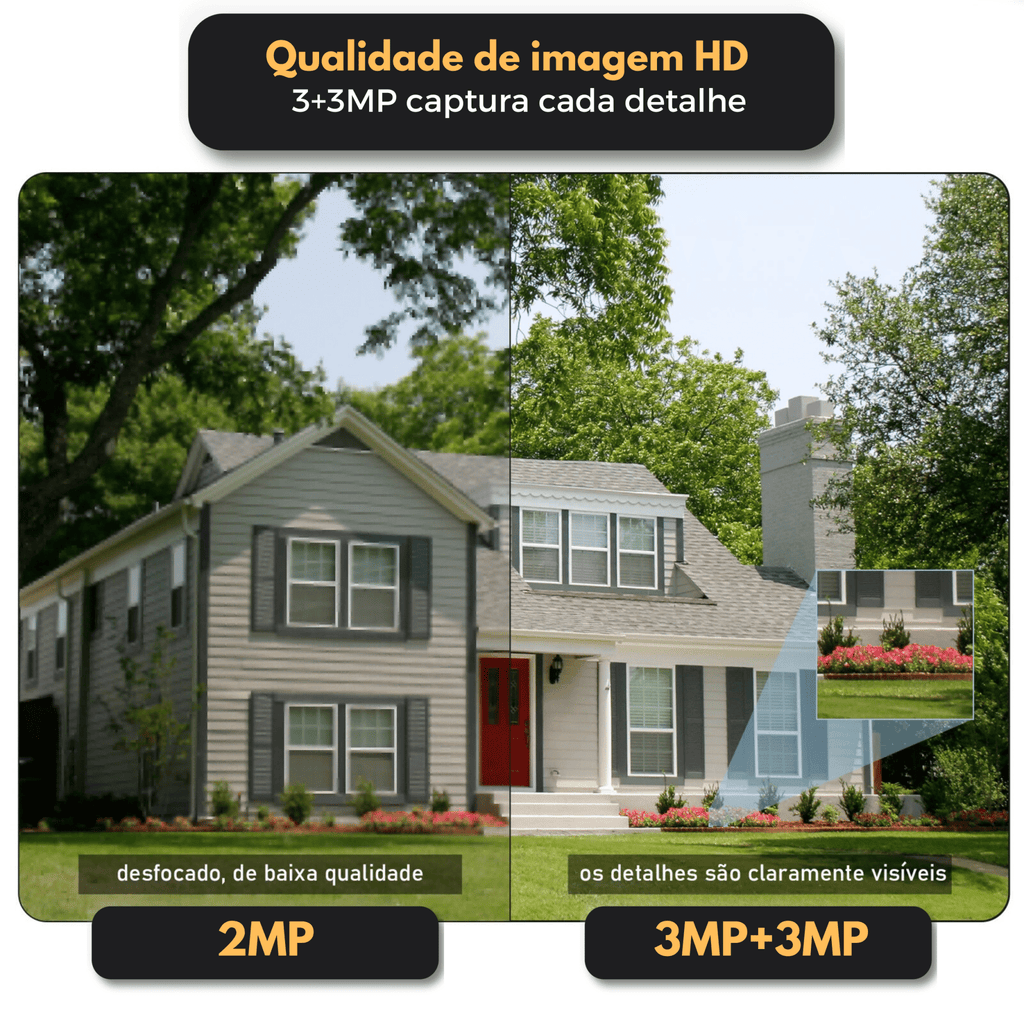 - Máxima Resolução e Zoom: Com a lente dupla, tenha uma visão ampla e, ao mesmo tempo, detalhes claros como nunca! 🏡🔍