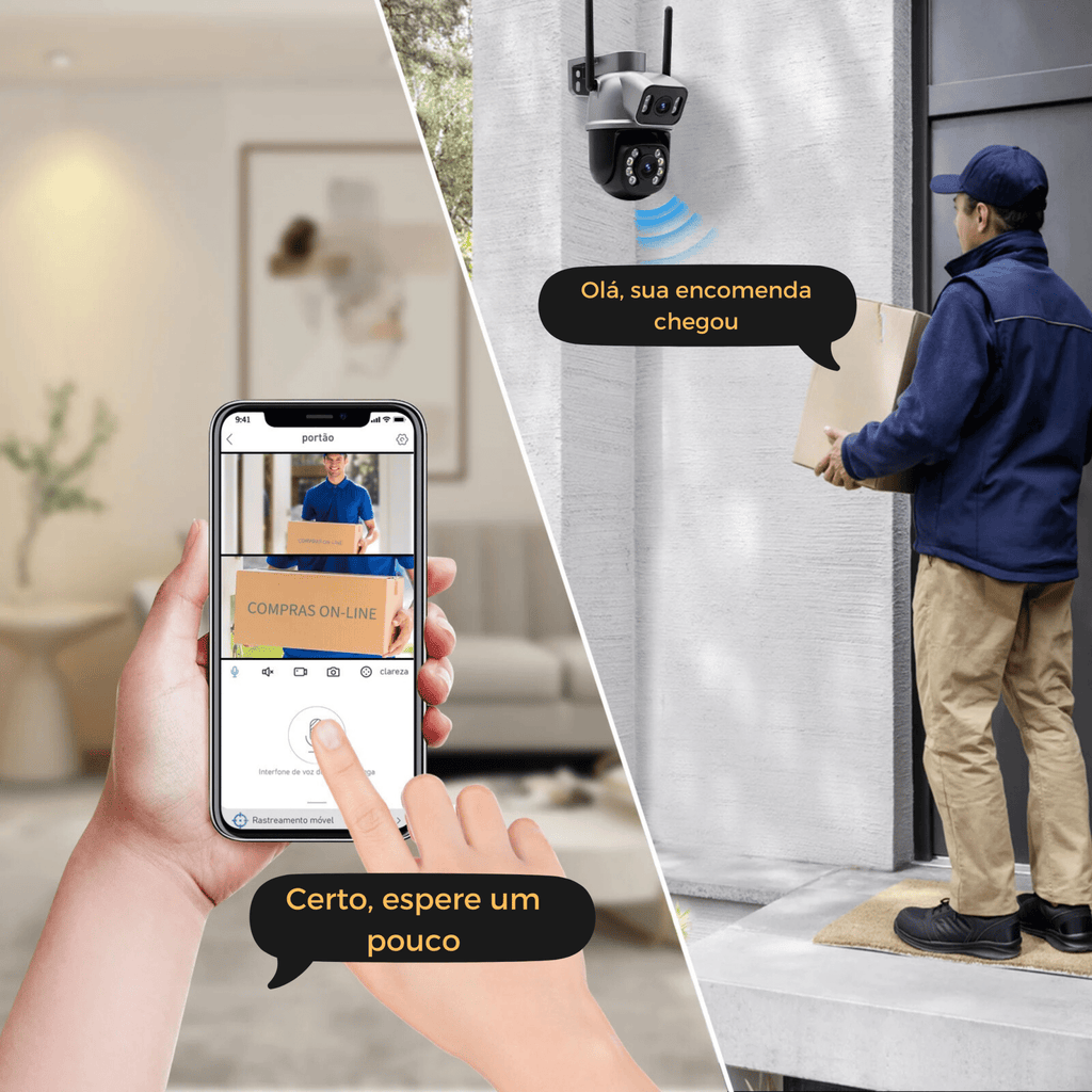 - Áudio Bidirecional: Converse com visitantes ou intimide quem não deveria estar ali. Fale diretamente através da câmera! 🎙️🔊
